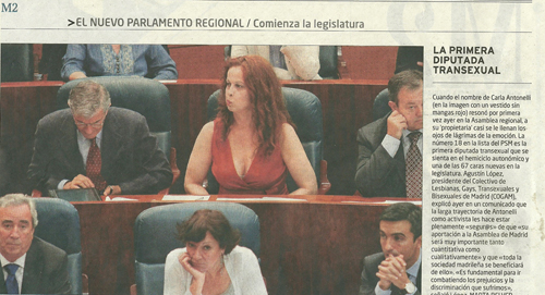 País 5 de abril 2007. Reportaje solicitud cambio registral de la primera transexual en Madrid con nueva Ley