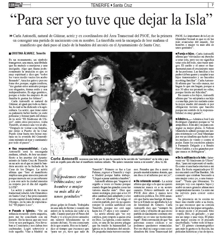 Diario El Día de Tenerife, entrevista del 27-06-2008