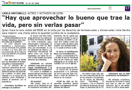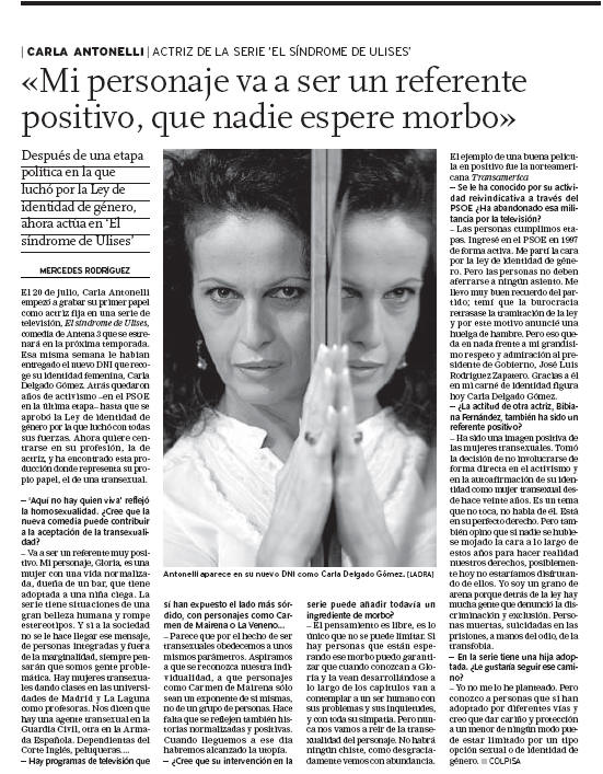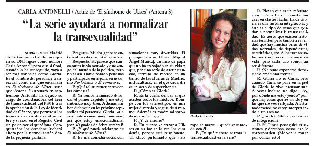1ª Reportaje revista Elle -2ª Reclamación del cambio de sexo con I.U. - 3ª Revista Pronto