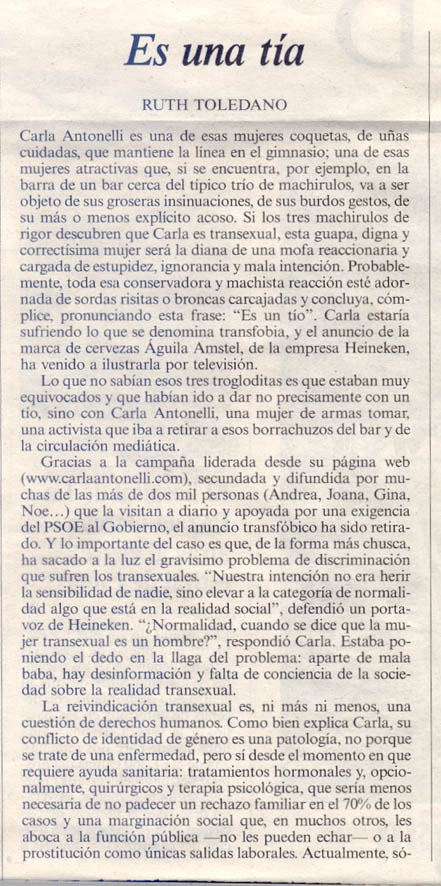 ``Es una tía ´´ Articulo en columna de Ruth Toledano Diario El País 25-07-2003