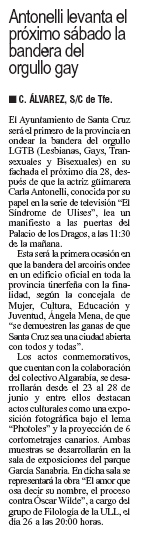 Diario El Día de Tenerife, ondeará por primera vez bandera del Orgullo GLTB (21-06-2008)