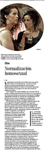 Articulo del Diario El Mundo por el Premio LesGaiCineMad Televisión 2008