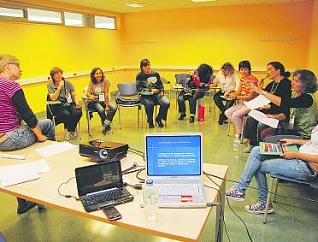 diferentes talleres sobre políticas lésbicas en el ámbito