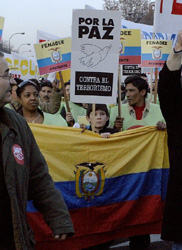 presencia de la comunidad ecuatoriana. Junto a las pancartas de rechazo a